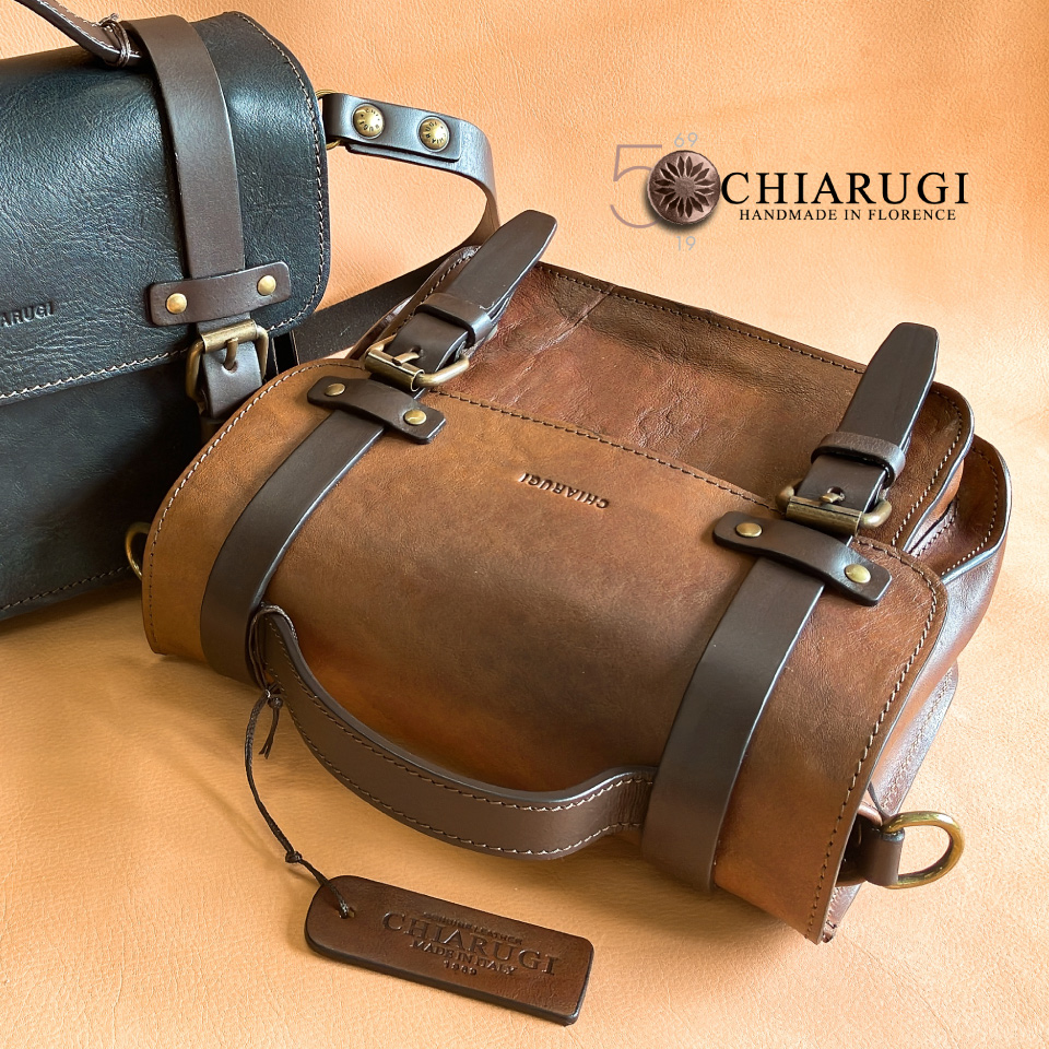 2024 秋冬 イタリア製 本革 牛革 ベジタブルタンニン 2wayショルダーバッグ スモール ハンドバッグ ユニセックス メンズ レディース ミニ CHIARUGI キアルージ オールドトスカーナ Art.53026