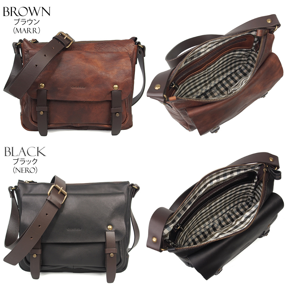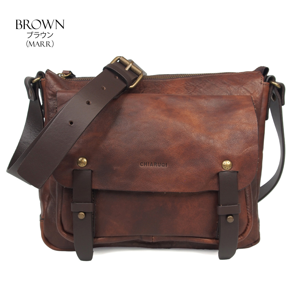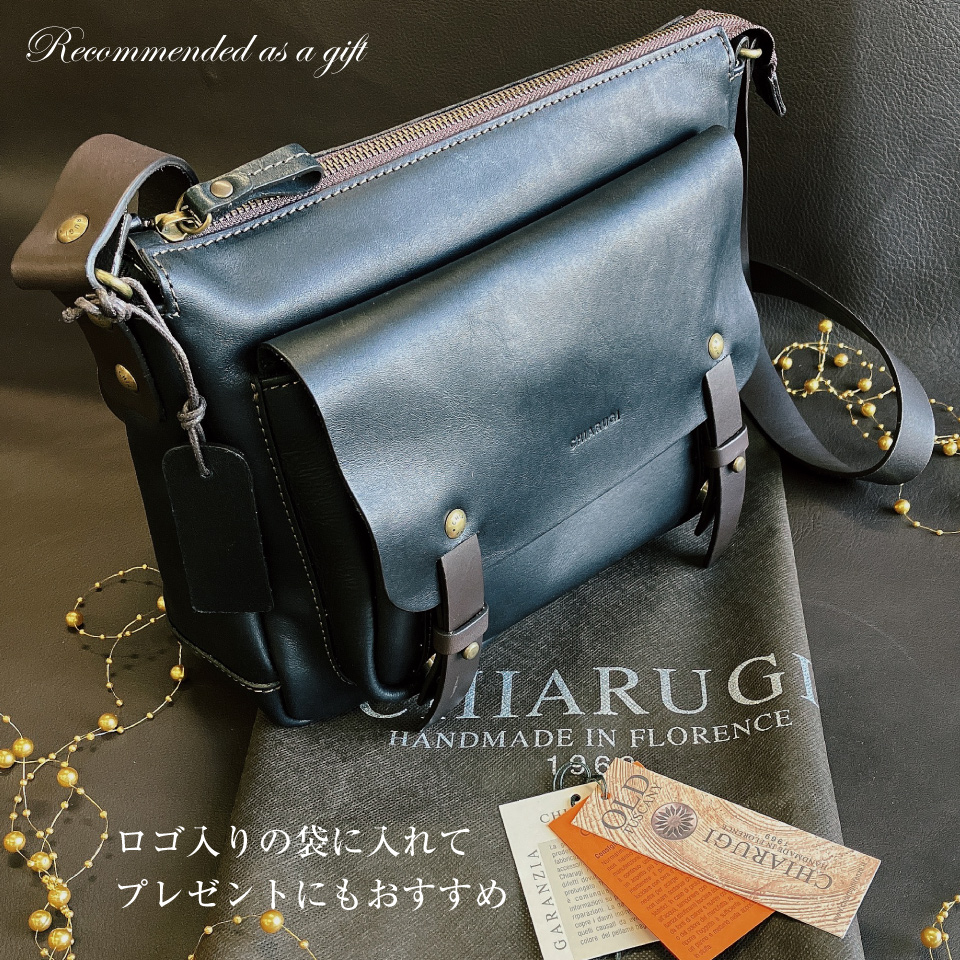 2024 秋冬 イタリア製 本革 牛革 ベジタブルタンニン ショルダーバッグ ユニセックス メンズ レディース CHIARUGI キアルージ オールドトスカーナ Art.52002