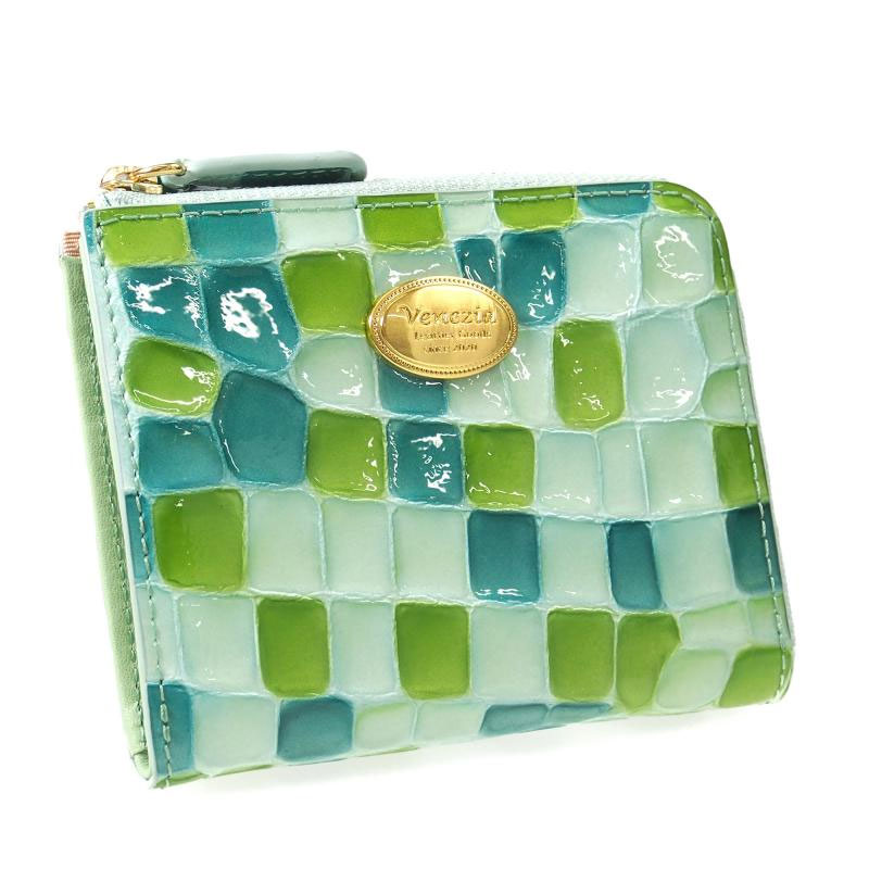ベネチアをイメージしたキラキラとパール調に輝く、ステンドグラスのようなレザーを使用したお財布です。