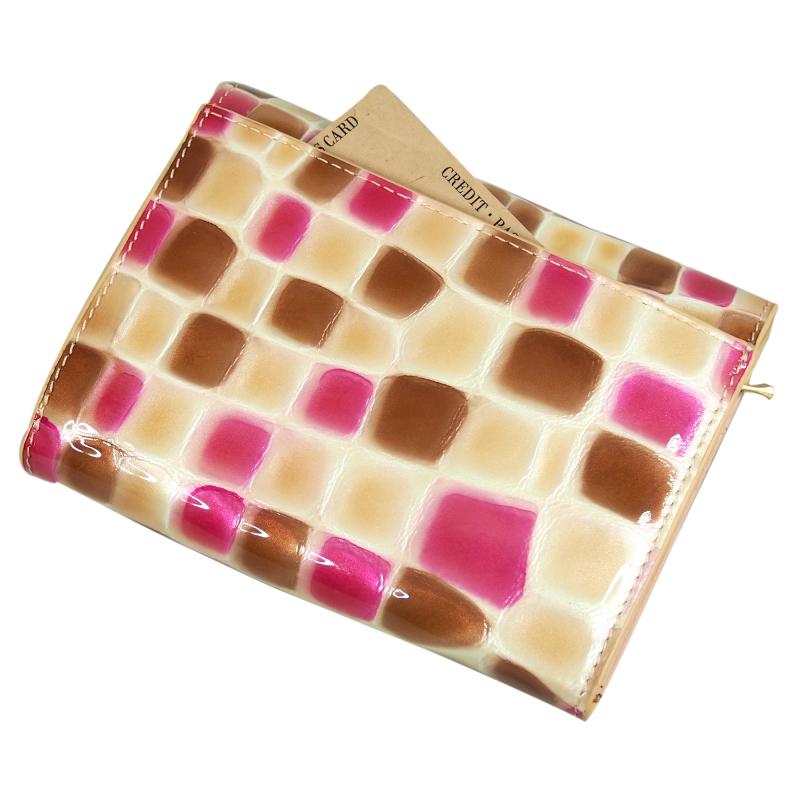 上質なエナメル素材は持っているだけでキラリと光る存在感があります。バッグから取り出し、会計時にスナップボタンを一つ外すだけのスムーズな動作で、カードや紙幣の取り出しが出来ます。