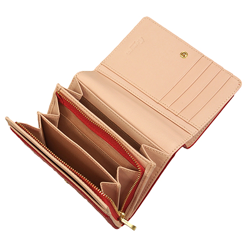 小銭入れはL字ファスナー式でサッと大きく開閉するので、一目で見やすく早く取り出せます。会計の時も使いやすくて便利です。安心して小銭も多めに収納できます。仕切りがあるので硬貨を整理して入れられます。