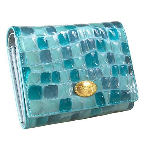 ベネチアをイメージしたキラキラとパール調に輝く、ステンドグラスのようなレザーを使用したお財布です。