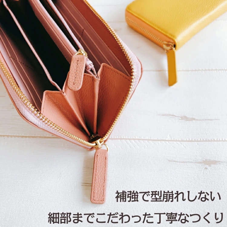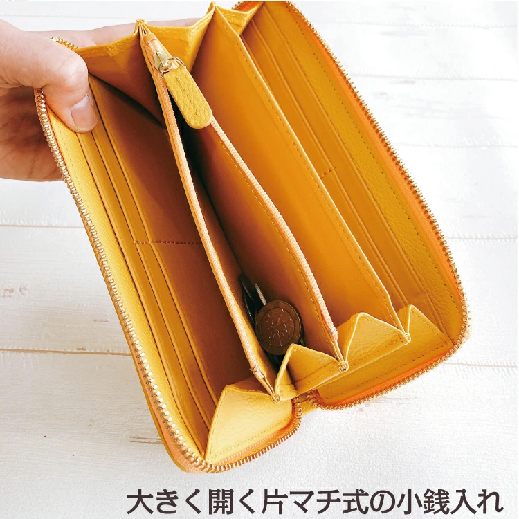 軽量なのに大容量!スリムで手に持ちやすく、大きく開き使いやすいラウンドファスナーの本牛革の長財布です。シンプルなデザインで縦が約9cmとスリムなので、手の小さい女性にも手に収まりやすい造りです。