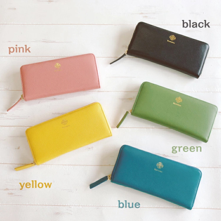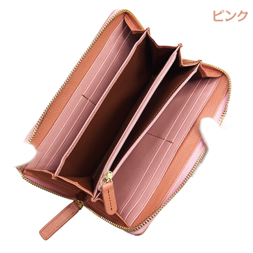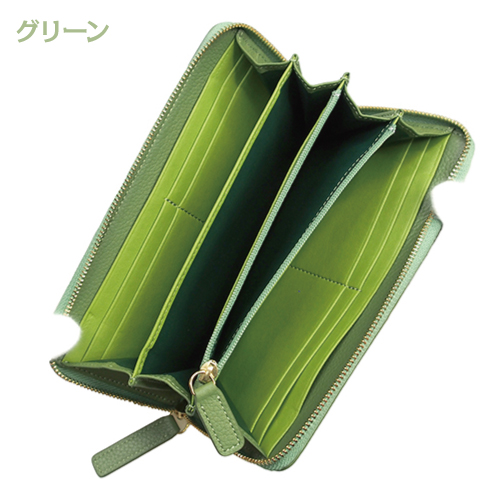 長財布 牛革 本革 スリム 軽量 ラウンドファスナー 札束入れ 小銭入れ付 アコーディオンマチ ROMANO(ロマノ) 5309 イエロー ピンク グリーン ブルー ブラック