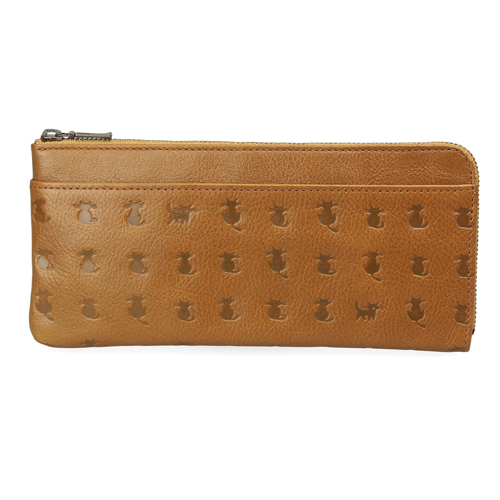 猫のシルエットが正面に型押しされた、なんとも可愛いらしいお財布です。よく見ると猫たちはそれぞれ違うシルエットをしていて、今にも動き出しそう。そんな猫の模様を見ているだけでも癒され、愛着が湧いてきます。