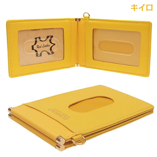 【メール便送料無料】パスケース 定期入れ 2つ折り バタフライ Dカン付き 本革 牛革 レザー 4面 両面 クリアポケット 軽量 薄型 360度回転式 ROMANO(ロマノ) SP-384 キイロ ローズピンク アカ オレンジ グリーン スカイブルー グレー ネイビー ブラック
