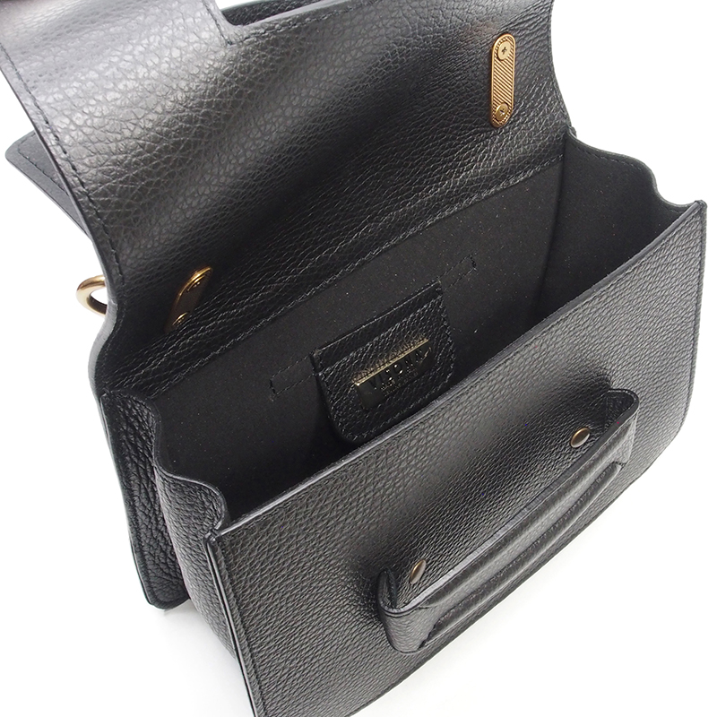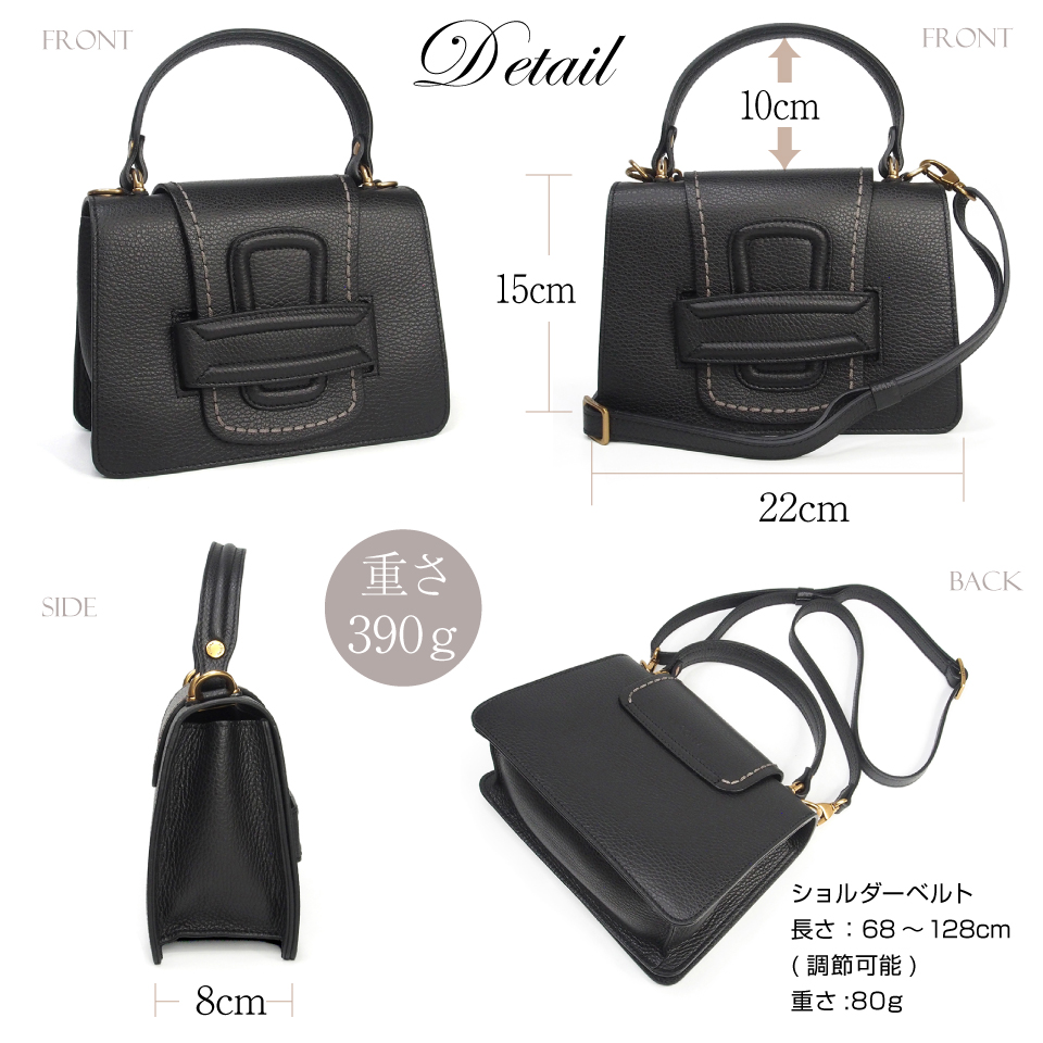 ゴールドの控えめなパーツがお洒落なイタリアらしさを演出しています。ショルダーの素材も本体と同じフルグレインカーフスキンレザーでしっとりと上質なイタリアンレザーを感じて頂けます。