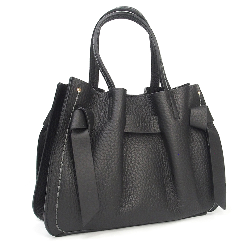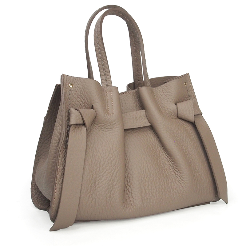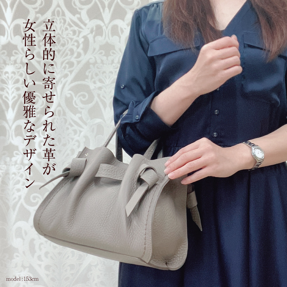 イタリア製 ヴィットリア Vittoria 牛革 ダブルカーフスキンレザー ハンドバッグ ショルダー 2way リボン ドレープ PLINIO VISONA プリニオ ヴィソナ No.24730