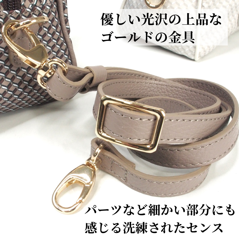 パーツにもこだわっており部分的にあしらわれたゴールドの金具は、優しい光沢で上品さと高級感を醸し出しており、デザインのアクセントにもなっています。